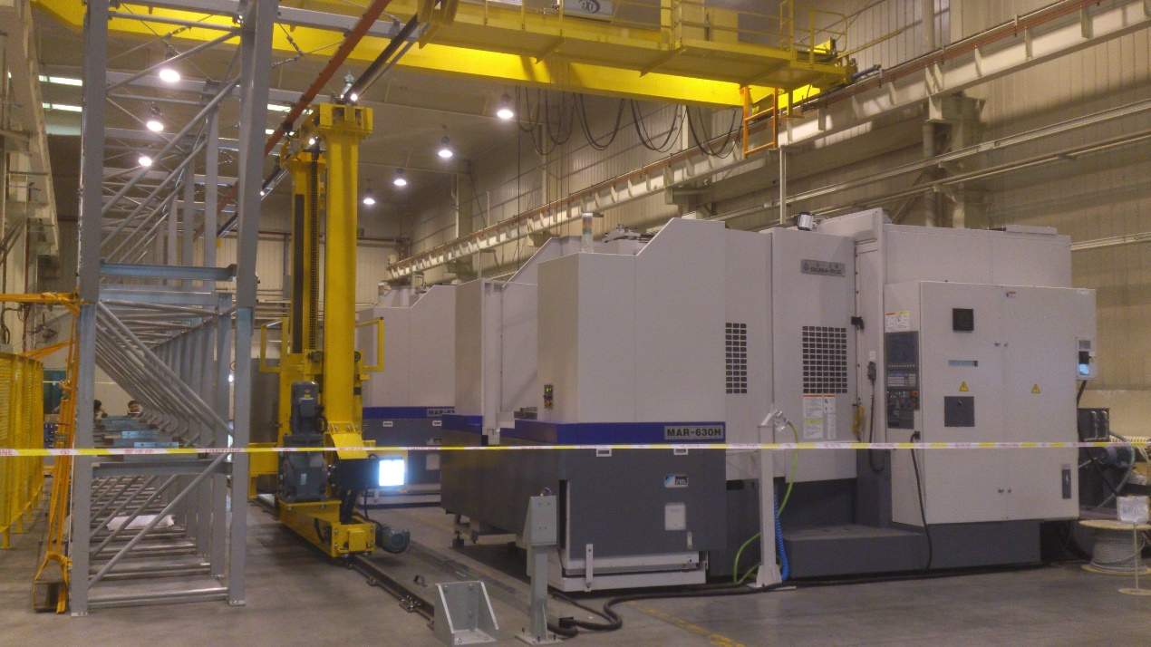 汽車零部件柔性制造系統(tǒng):本項(xiàng)目由兩臺(tái)臥式加工中心、1個(gè)堆垛機(jī)、1個(gè)立體物料庫等主要硬件設(shè)備組成。